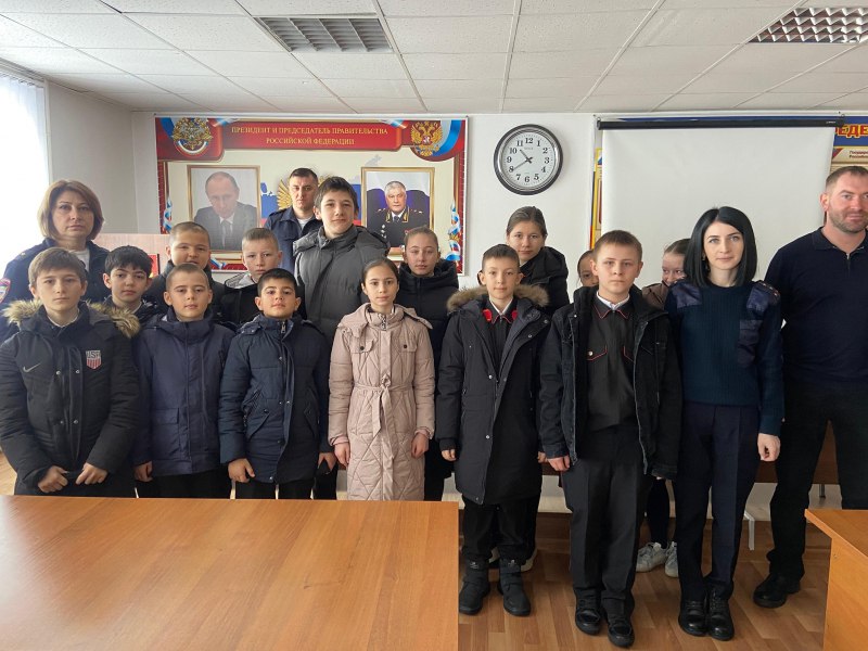 В рамках Всероссийской акции «Студенческий десант» майор полиции Светлана Кибизова , капитан полиции Кристина Корнаева , старший лейтенант полиции Инга Койбаева, старший лейтенант полиции Сослан Джикаев совместно с советником главы Дигорского муниципального района старшим лейтенантом полиции в отставке Константином Аладжиковым организовали экскурсию для школьников по подразделениям Отдела МВД России по Дигорскому району.