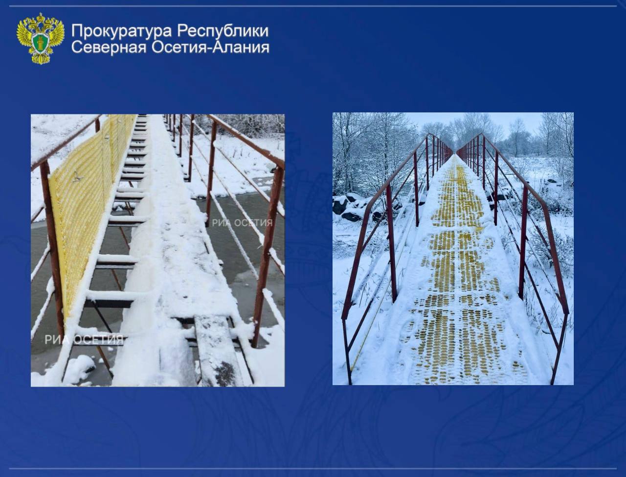 Прокуратурой Алагирского района Республики Северная Осетия – Алания проведена проверка по публикации, размещенной в сети «Интернет», о ненормативном состоянии пешеходного моста через реку Цраудон.