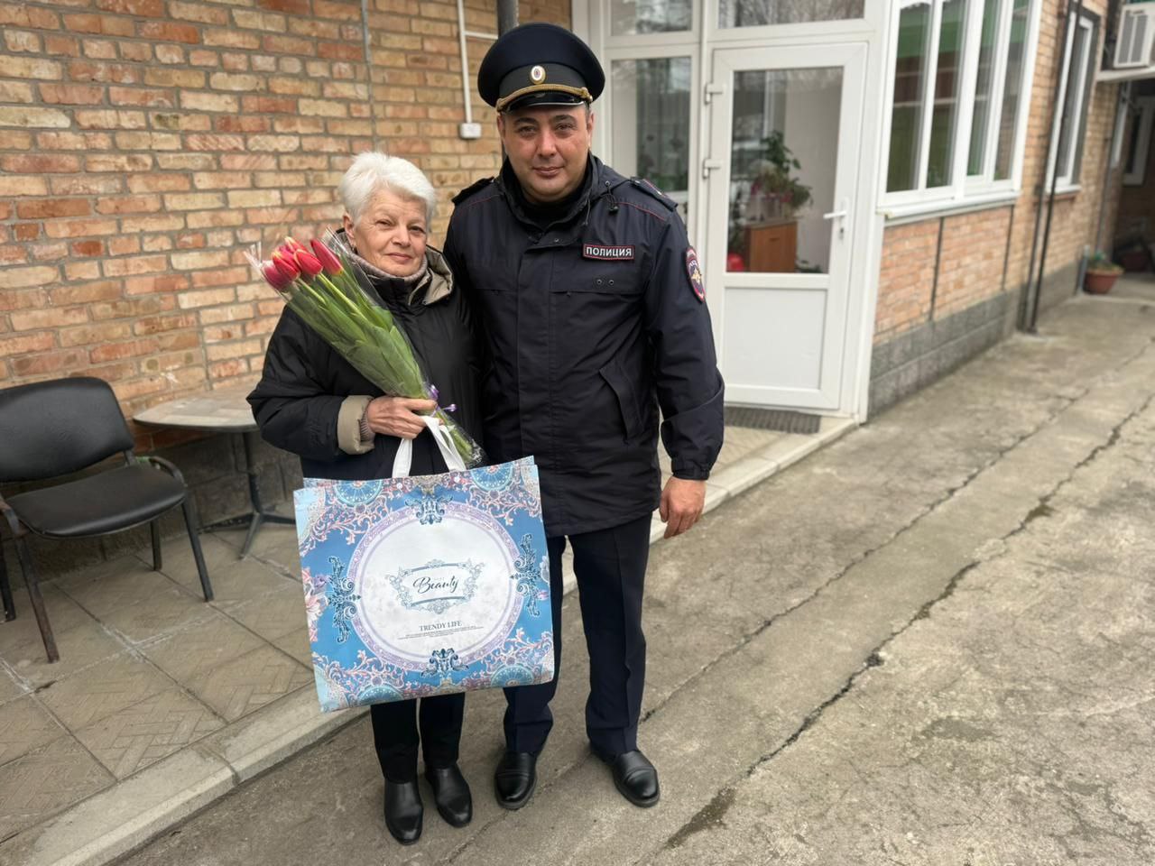 Сотрудники подразделений полиции нанесли визит в семьи и с искренними пожеланиями весны и тепла в душе подарили женщинам тюльпаны и такой же теплый подарок.