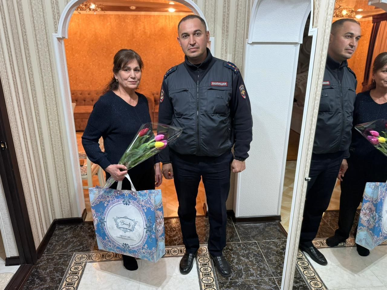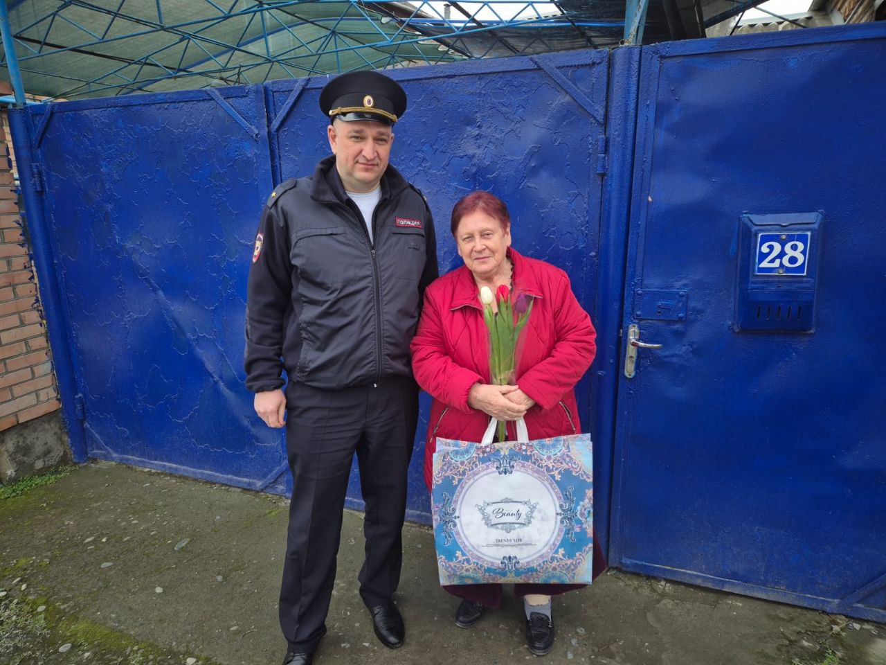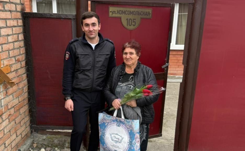 В Северной Осетии полицейские Моздокского района присоединились к Всероссийской акции "8 марта - в каждый дом" и поздравили с Международным женским днем матерей и вдов погибших коллег