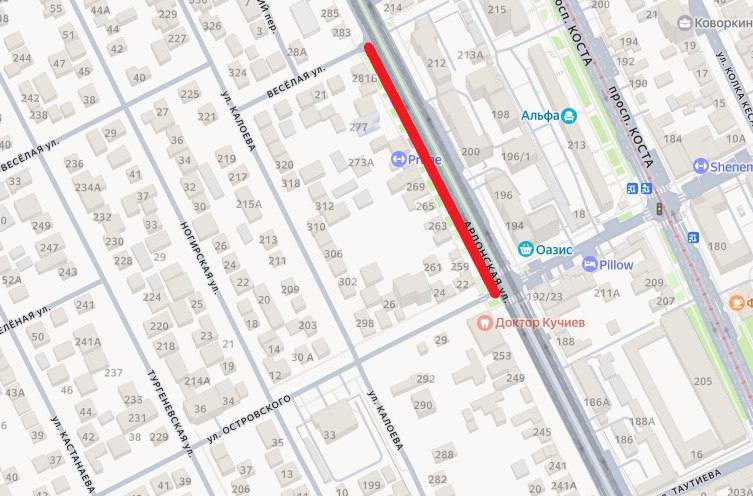 по улице Ардонской от ул. Веселой до ул. Островского