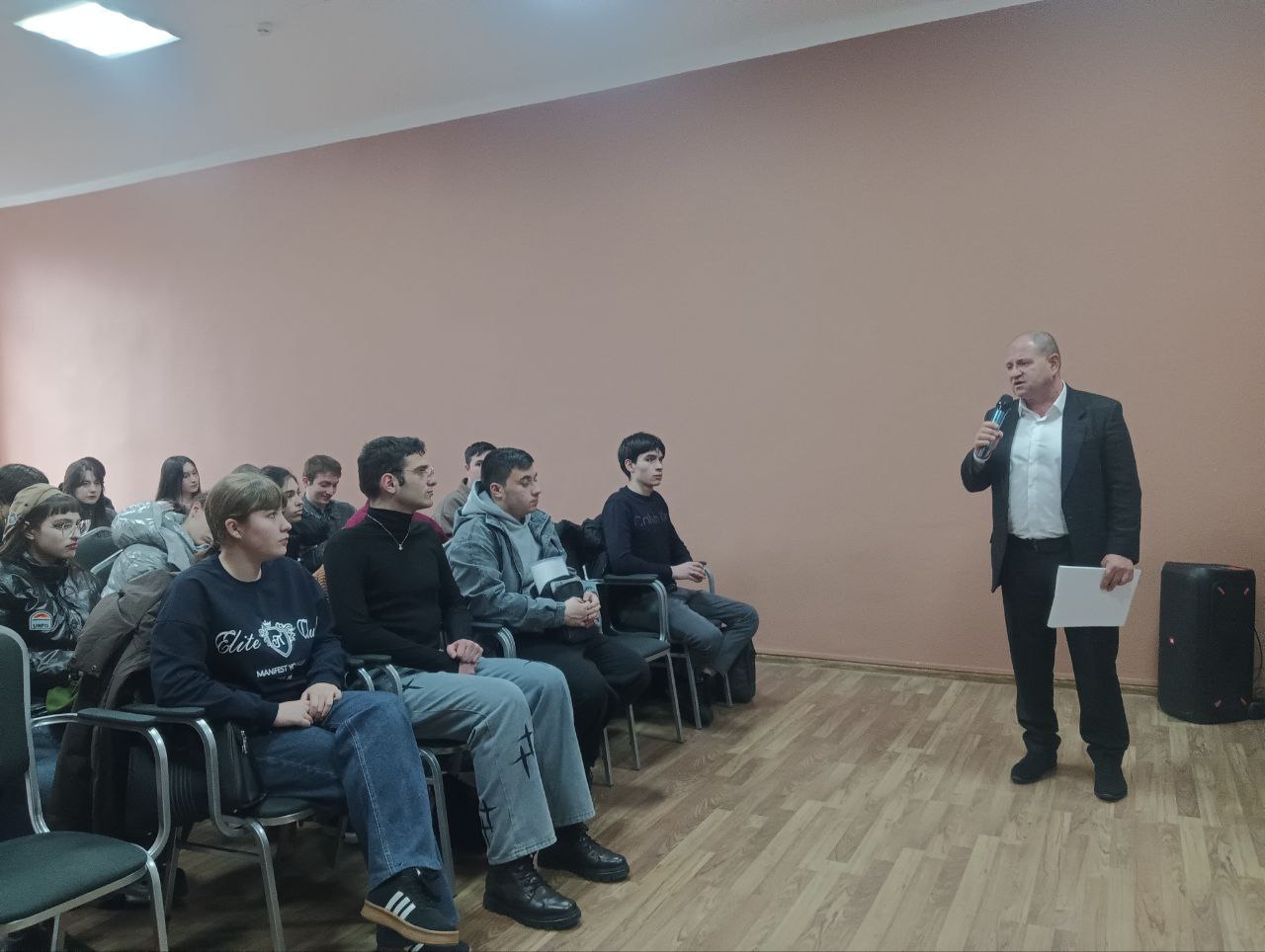 • Студент 4 курса исторического факультета СОГУ Артемий Мириков выступил с докладом *«Осетия — Дагестан: кузница героев»*. Он рассказал о том, как судьбы двух республик переплетались в борьбе и созидании, рождая имена, которыми гордится вся страна. А также рассказал о героизме с точки зрения многонационального народа.