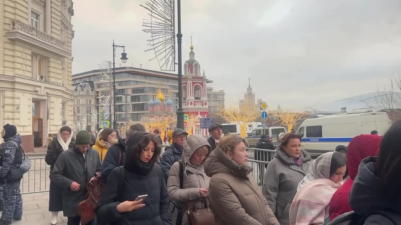 Прямая трансляция начнется в 12:00 по Московскому времени, но у Гостиного Двора большая очередь образовалась уже с самого утра.