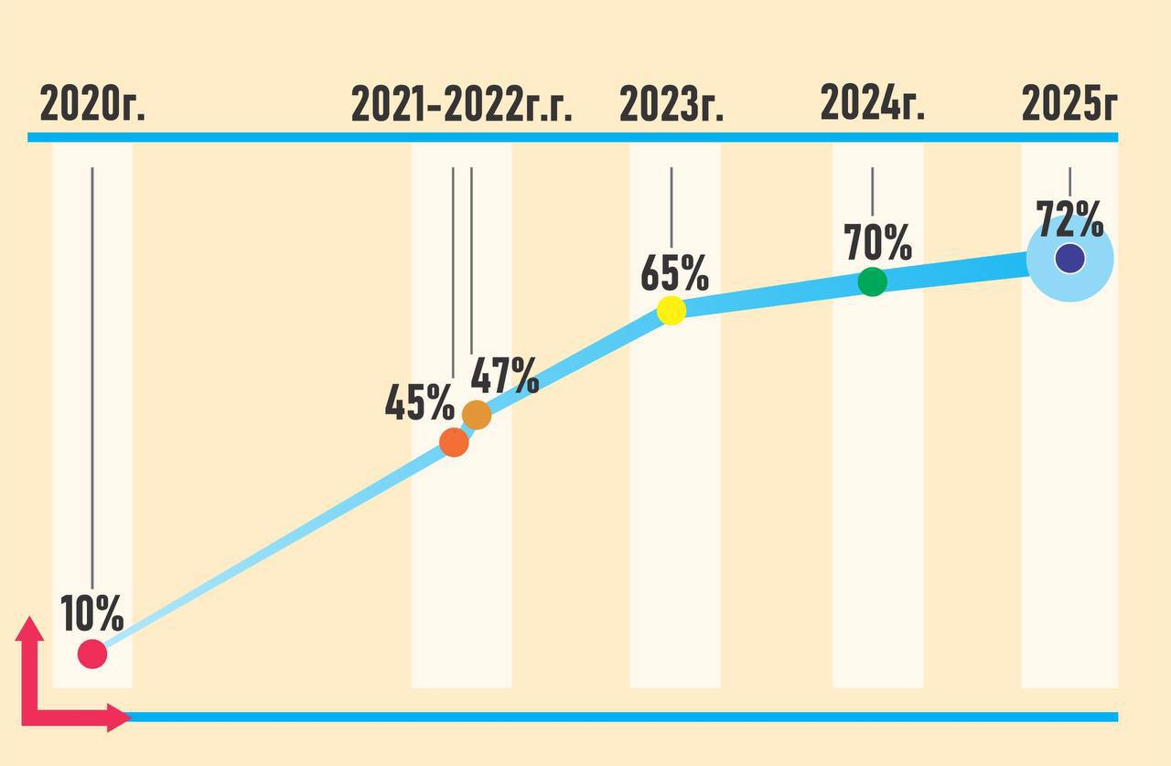 Для понимания динамики платежей за электроэнергию следует понимать, что в 2020 году уровень оплат за электроэнергию в отрасли едва доходил до 10%, а в 2021–2022 годах составлял порядка 45–47%. С момента создания единого оператора в 2023 году уровень платежей достиг 65%, в 2024 году 70%, в 2025 - 72%. Это свидетельствует о существенном росте платёжной дисциплины за последние годы.