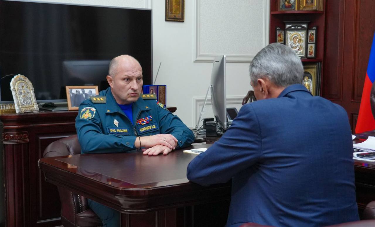 Глава РСО Алания Сергей Меняйло и министр Российской Федерации по делам гражданской обороны, чрезвычайным ситуациям и ликвидации последствий стихийных бедствий Александр Куренков провели рабочую встречу во Владикавказе. Стороны проанализировали меры по защите населения и территорий от природных и техногенных опасностей, а также оценили возможность создания региональной пожарной охраны.