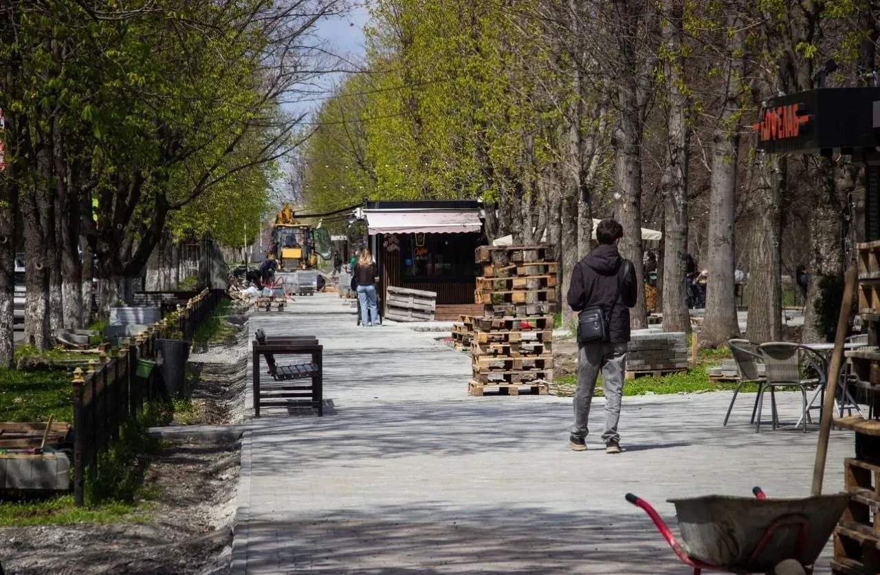 Специалисты уже демонтировали старое асфальтовое покрытие. Сейчас рабочие устанавливают бордюры и поребрики, готовят основания будущих дорожек и укладывают брусчатку, рассказал глава города Вячеслав Мильдзихов.