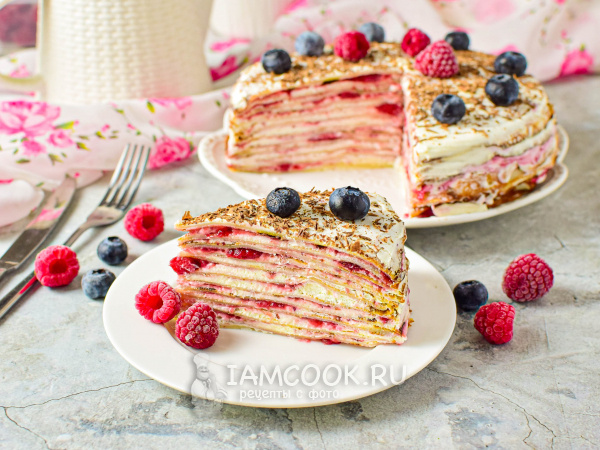 Первым в нашем списке стоит особенный блинный торт с кремом чиз и сочными ягодами. Он станет великолепным началом дня, наполняя дом сладким ароматом. Ингредиенты очень просты: