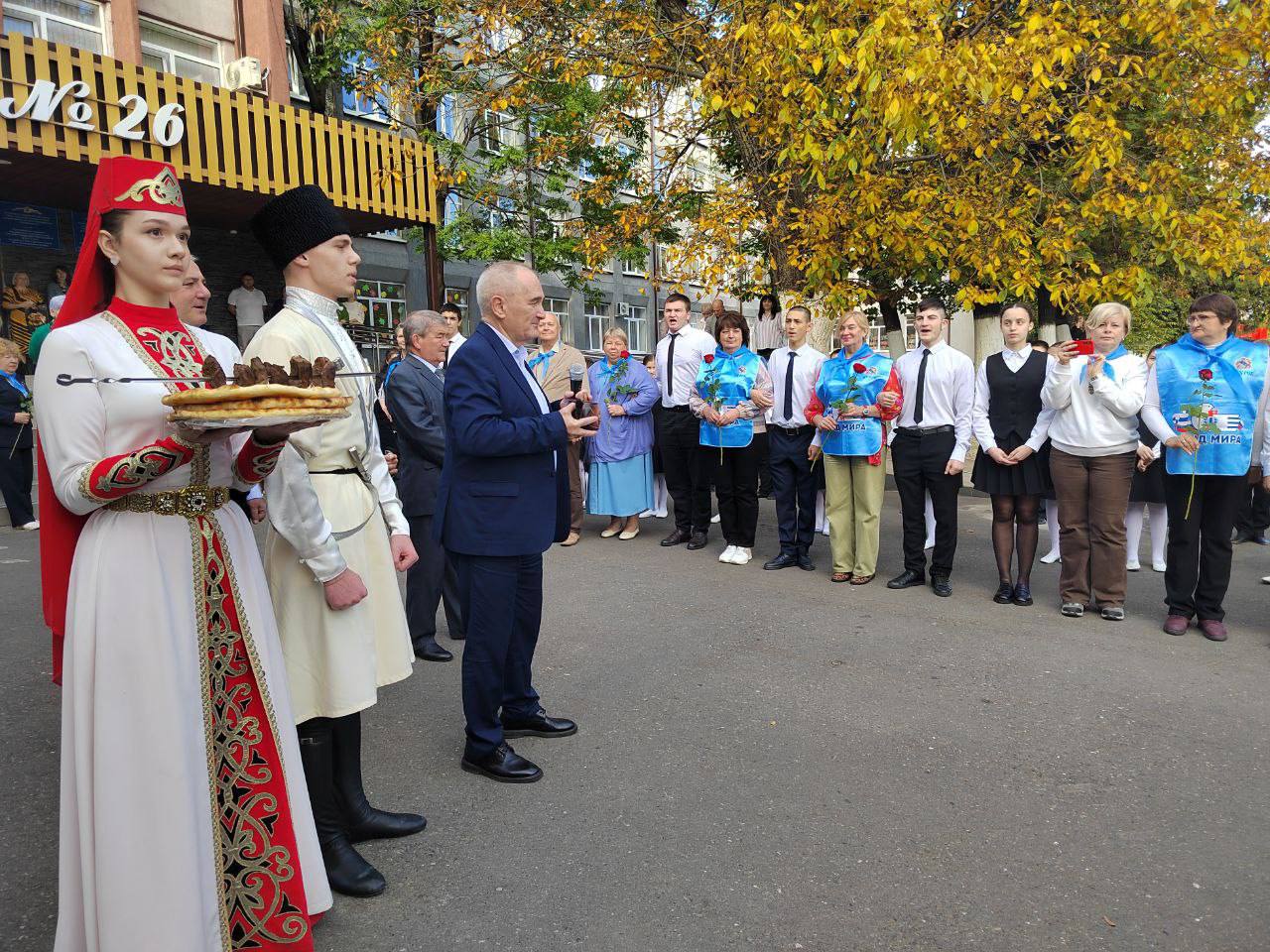 Гостей поприветствовала начальник управления образования АМС Владикавказа Наталья Тотоева. От имени главы городской администрации Вячеслава Мильдзихова она вручила бдагодарственные письма участникам Марша Мира.
