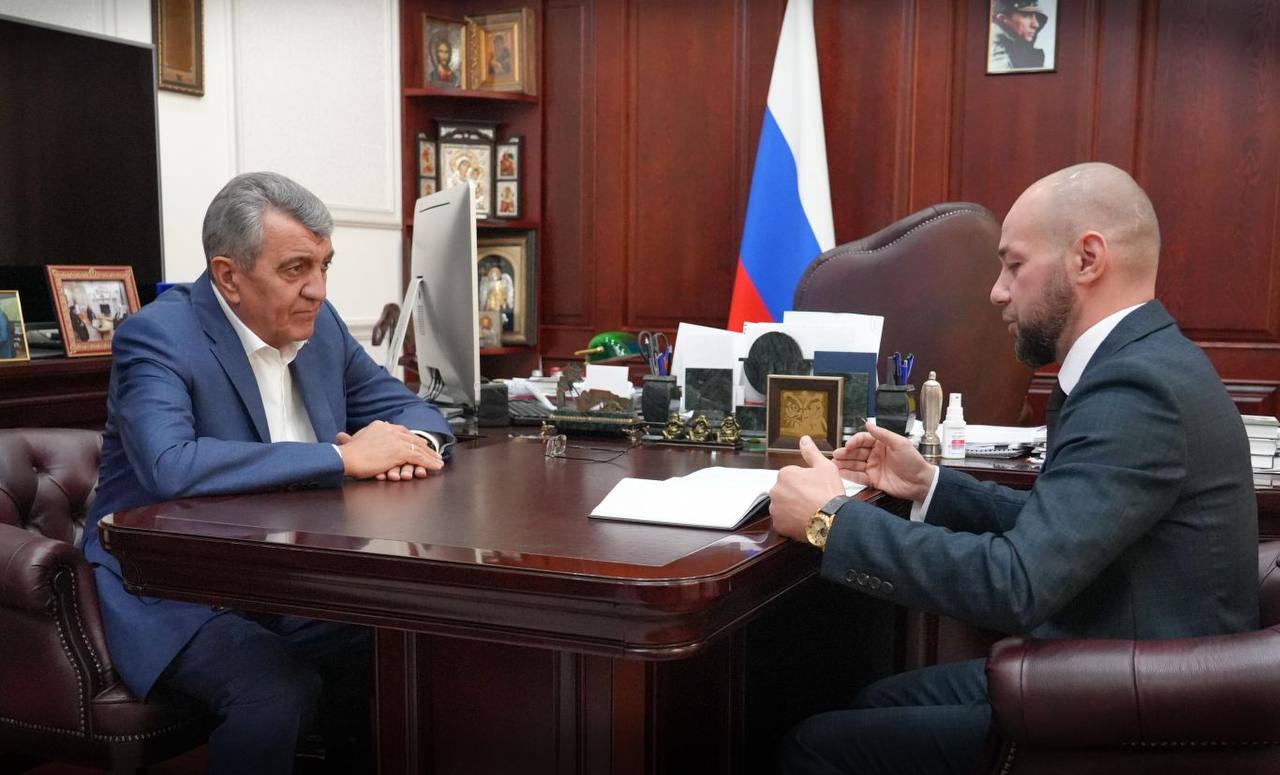 Глава РСО – Алания Сергей Меняйло встретился с директором Владикавказского многопрофильного техникума, участником СВО Станиславом Дзгоевым.