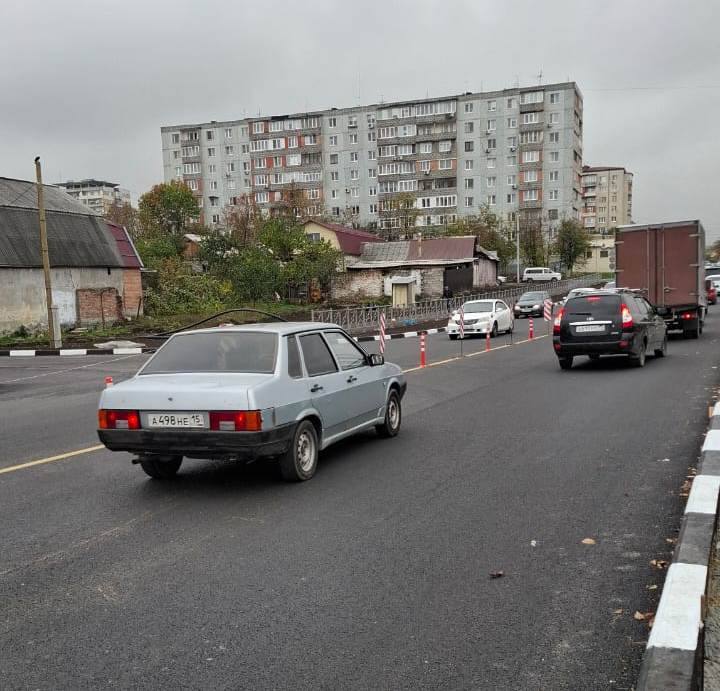 к мосту со стороны ул.Х.Мамсурова, ликвидировали существовавший изгиб трассы и теперь подъезды к мосту будут направлены строго в створ моста. Это сделает движение по мосту безопасней и комфортней, заторов и дорожных пробок станет меньше.