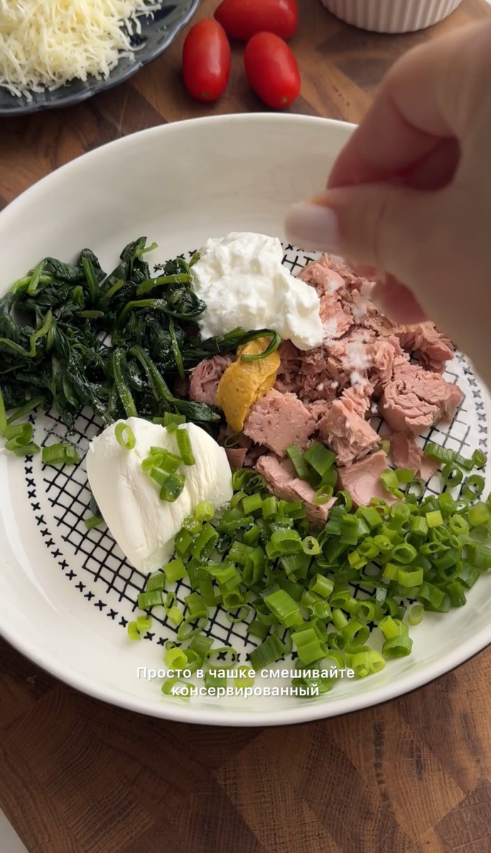 - 160 граммов консервированного тунца, предварительно отцеженного