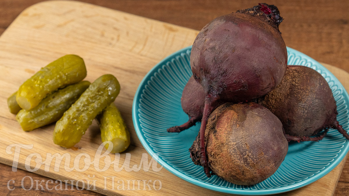Салат со свеклой, огурцами и сельдью