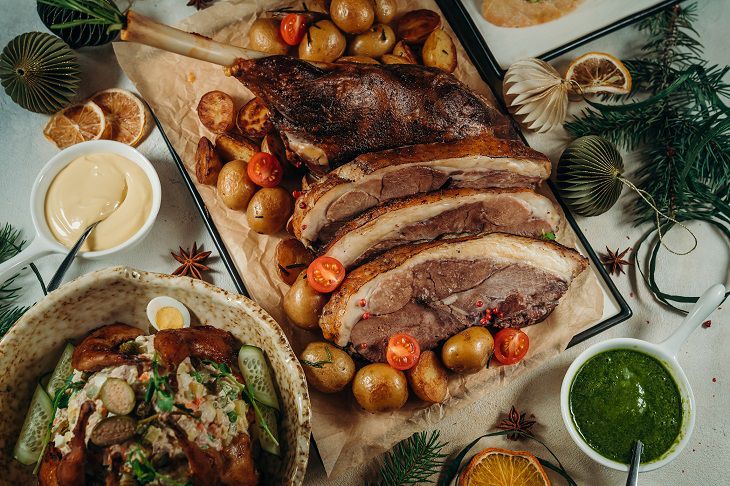 Для приготовления мяса на ваш праздничный используйте охлажденное, а не замороженное мясо. Тщательно выбирайте его при покупке, внимательно изучите цвет, запах, общий вид мяса. Если вы готовите стейк или ребра – обязательно после жарки дайте мясу отдохнуть, набраться сока.