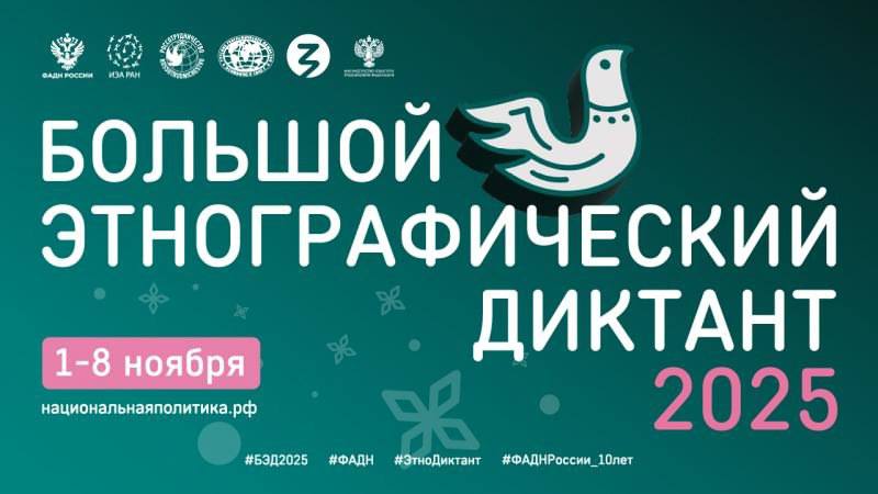 С 1 по 8 ноября 2025 г. пройдет юбилейный десятый «Большой этнографический диктант»