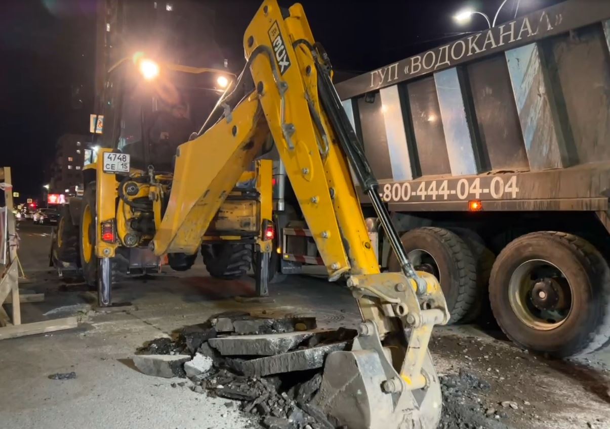 Новый водопровод на ул. Г. Плиева ночью подключили к системе водоснабжения.