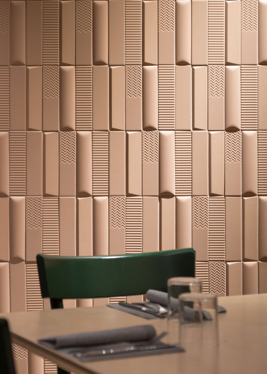 В интерьере ресторана, выполненном по проекту Costa Architetti в итальянском городе Катания, плитка из коллекции Biscuit стала ключевым элементом. Эта коллекция удивляет разнообразием текстур: плоские, выпуклые и объемные формы создают эффект глубины и динамики, придавая строгому пространству современное звучание.