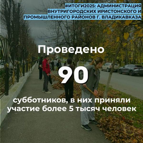 Администрацией Иристонского и Промышленного районов г. Владикавказа проделана масштабная работа по наведению порядка. Об основных итогах деятельности подразделения читайте в наших карточках.