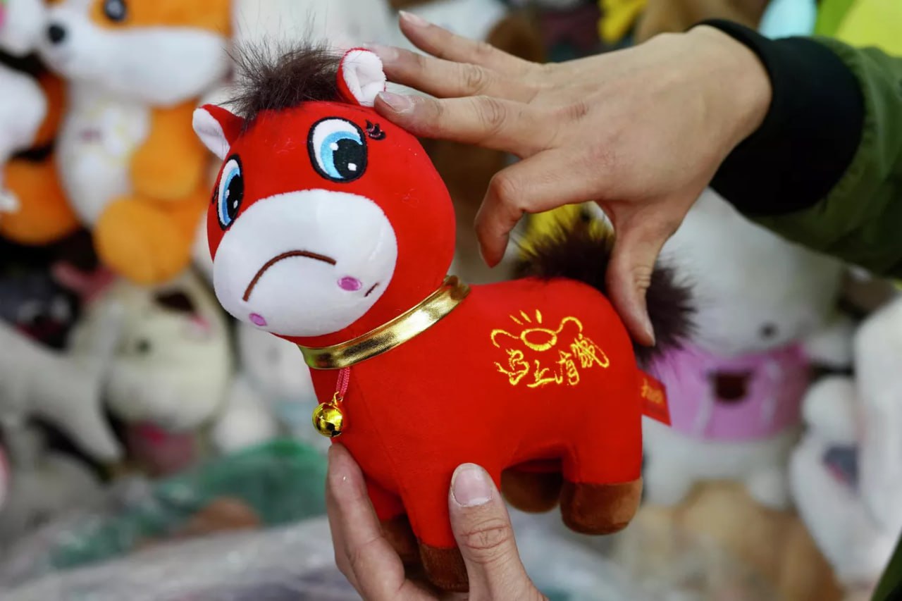 В Китае по ошибке выпустили новогоднюю красную лошадку, которая грустит, после чего она сразу же стала популярной у местных жителей.