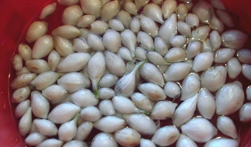 Перед замачиванием луки рекомендуют слегка освободить от внешней шелухи, однако полностью очищать их не следует. Для приготовления раствора достаточно растворить одну чайную ложку соды на литр горячей воды. Луковицы замачиваются на протяжении 30 минут. Чтобы раствор не остывал слишком быстро, емкость можно накрыть крышкой и обернуть в полотенце.