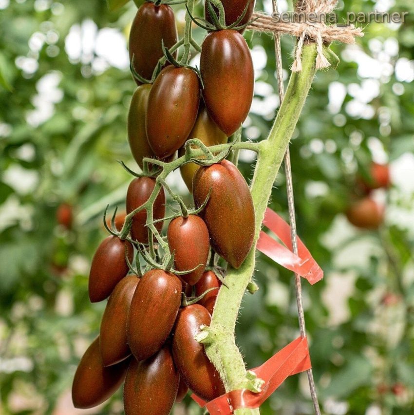 Растение характеризуется высоким ростом — в теплице может достигать до 200 см. Стебель крепкий, с длинными междоузлиями, поэтому важно следить за его формой и укреплять кусты. Плоды сорта уникальны: масса колеблется от 25 до 50 граммов, а форма с острым носиком делает их запоминающимися. На спелом томате кожица будет ярко-красной, а структура мякоти мясистой и плотной.