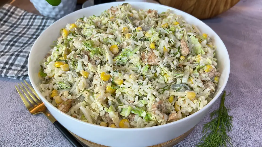 Салат с пекинской капустой, курицей и рисом