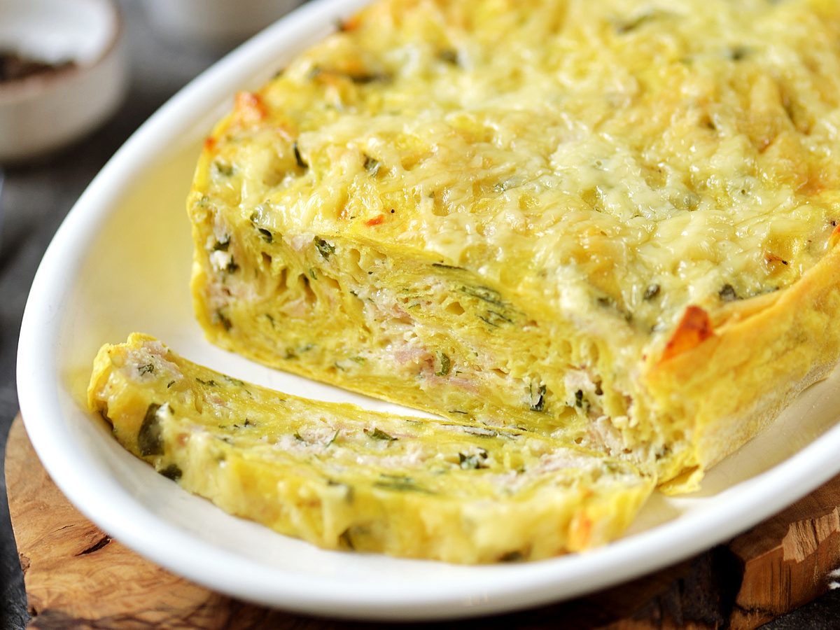 Пирог без теста — это настоящая находка для занятых будней. Вместо традиционного теста используется кукурузный лаваш, который не только экономит время, но и придаёт необычный вкус. Лаваш рвётся руками, заливается мясным фаршем с яйцами и сливками, а сверху обсыпается натёртым сыром. В результате получается мягкий и сытный пирог, который отлично хранится в холодильнике до двух дней.