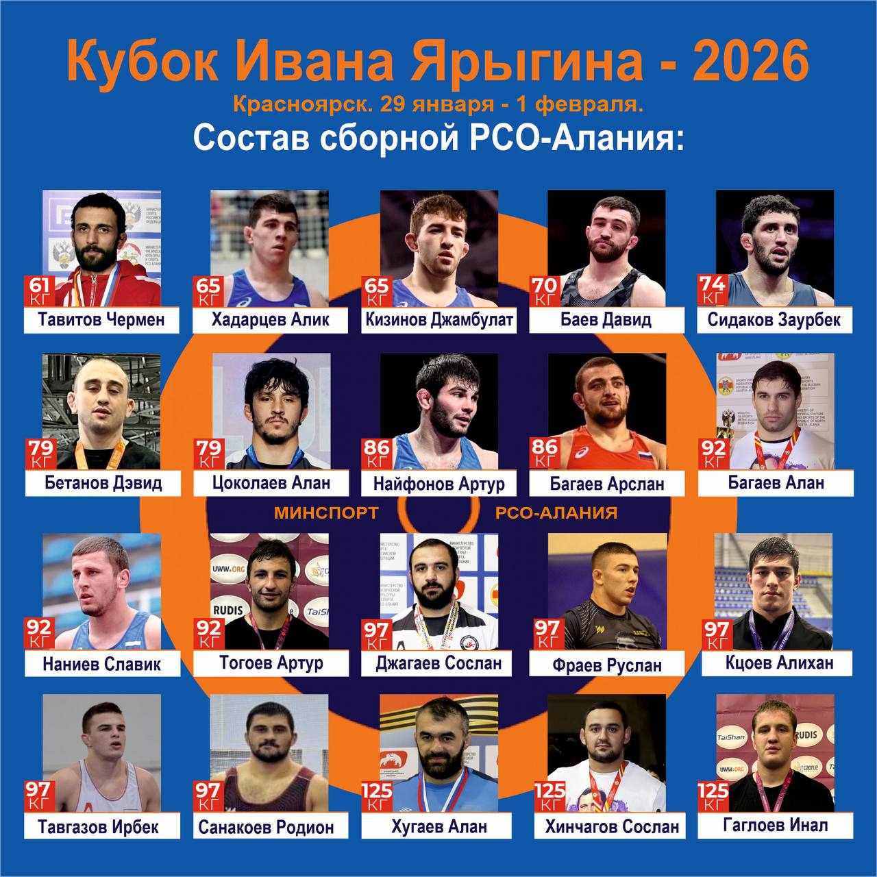 Сборная команда РСО-Алания представлена 20 спортсменами, среди которых Олимпийский чемпион Заурбек Сидаков, бронзовый призёр Олимпийских игр Артур Найфонов и чемпион мира Давид Баев.