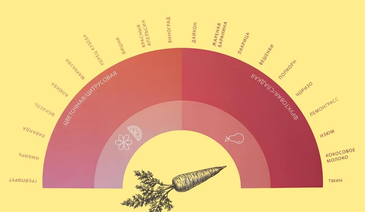 Пиразины и терпены в моркови придают ей цитрусовые, цветочные и фруктовые акценты. Ботва не только не выбрасывается, но и может стать изюминкой: её можно добавлять в салаты или обжаривать в темпуре.