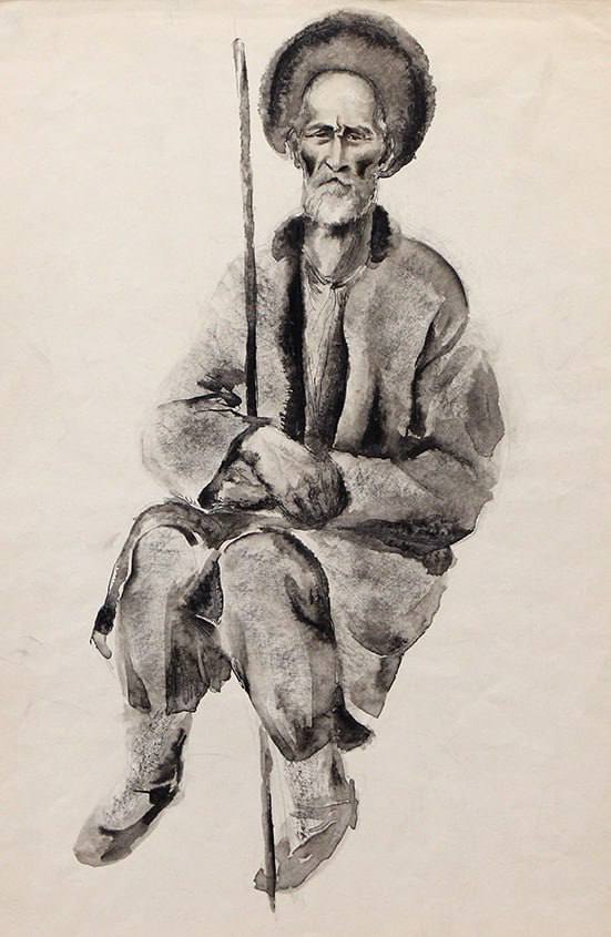 4. Ксения КЛЕМЕНТЬЕВА. Селение Нузал. Старик. 1933. Бумага, тушь, перо, акварель. Музейное объединение «Художественная культура Русского Севера», Архангельск.