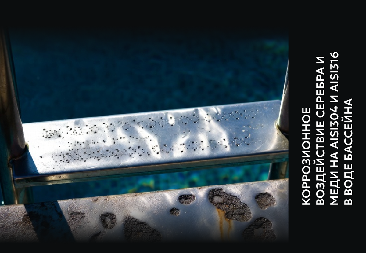 На уровне этих концентраций влияние серебра и меди на коррозию нержавеющих сталей минимально. Научные исследования не подтверждают, что такие уровни способны вызывать коррозию AISI304 и AISI316 в условиях бассейна.