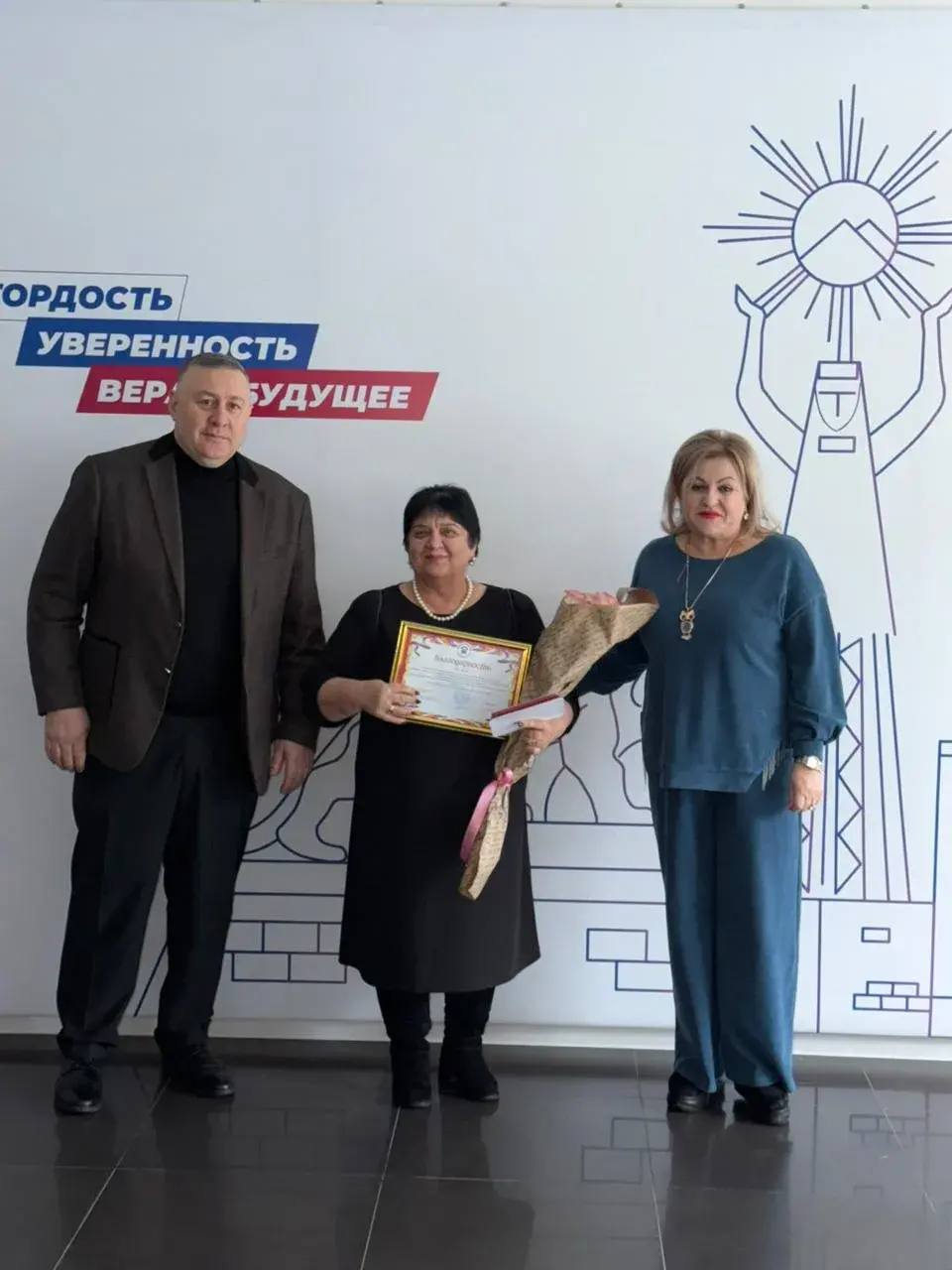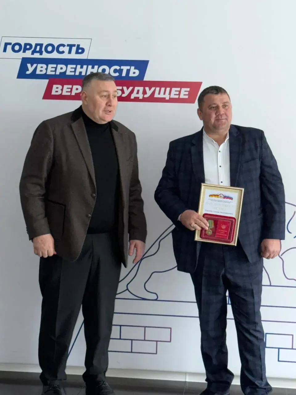 В штабе общественной поддержки «Единой России» прошло награждение жителей села Ногкау во главе с Русланом Голоевым за активную организацию сбора гуманитарной помощи и отправку в зону СВО. Медали и благодарственные письма сельчанам вручили от имени Министерства спорта республики и Аланского казачьего войска.