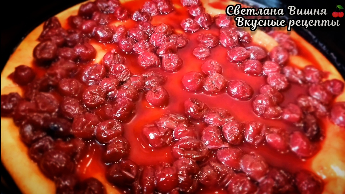 4. Когда запеканка готова, поливаем её вишневой заливкой и оставляем остывать. Перед подачей можно украсить свежими ягодами или посыпать сахарной пудрой, а для настоящего десерта рекомендуем подать с шариком ванильного мороженого.