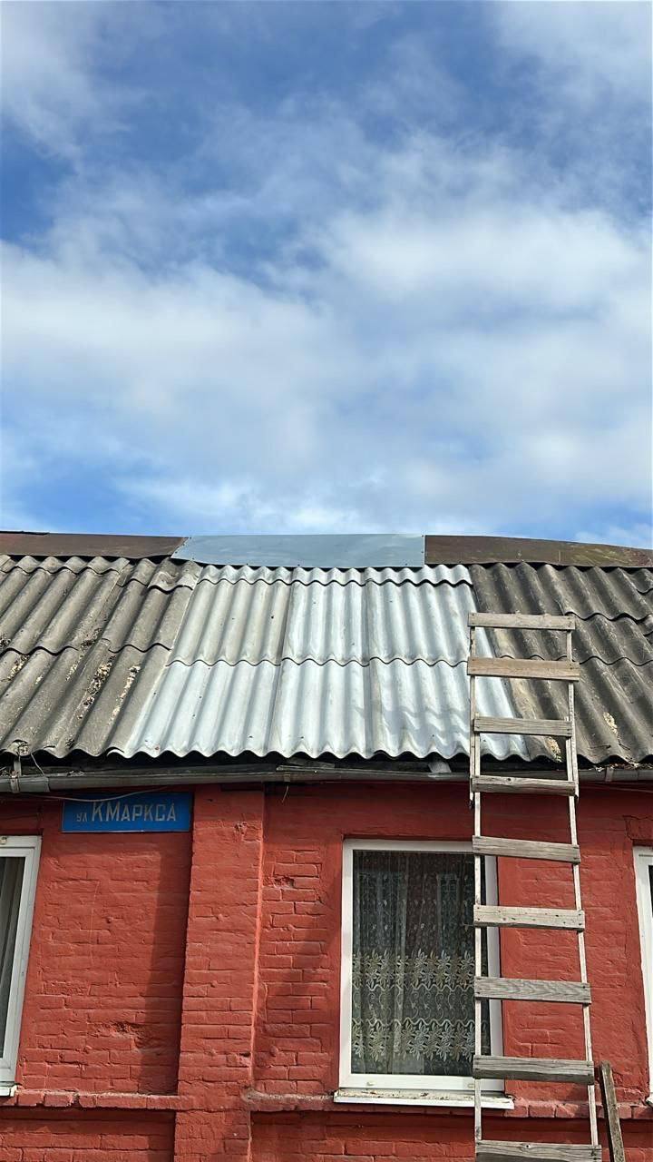 Одно из деревьев повредило крышу частного дома по улице К. Маркса. Уже сегодня с утра на место прибыла бригада специалистов. Рабочие оперативно демонтировали повреждённый участок и полностью заменили проломленную часть кровли.
