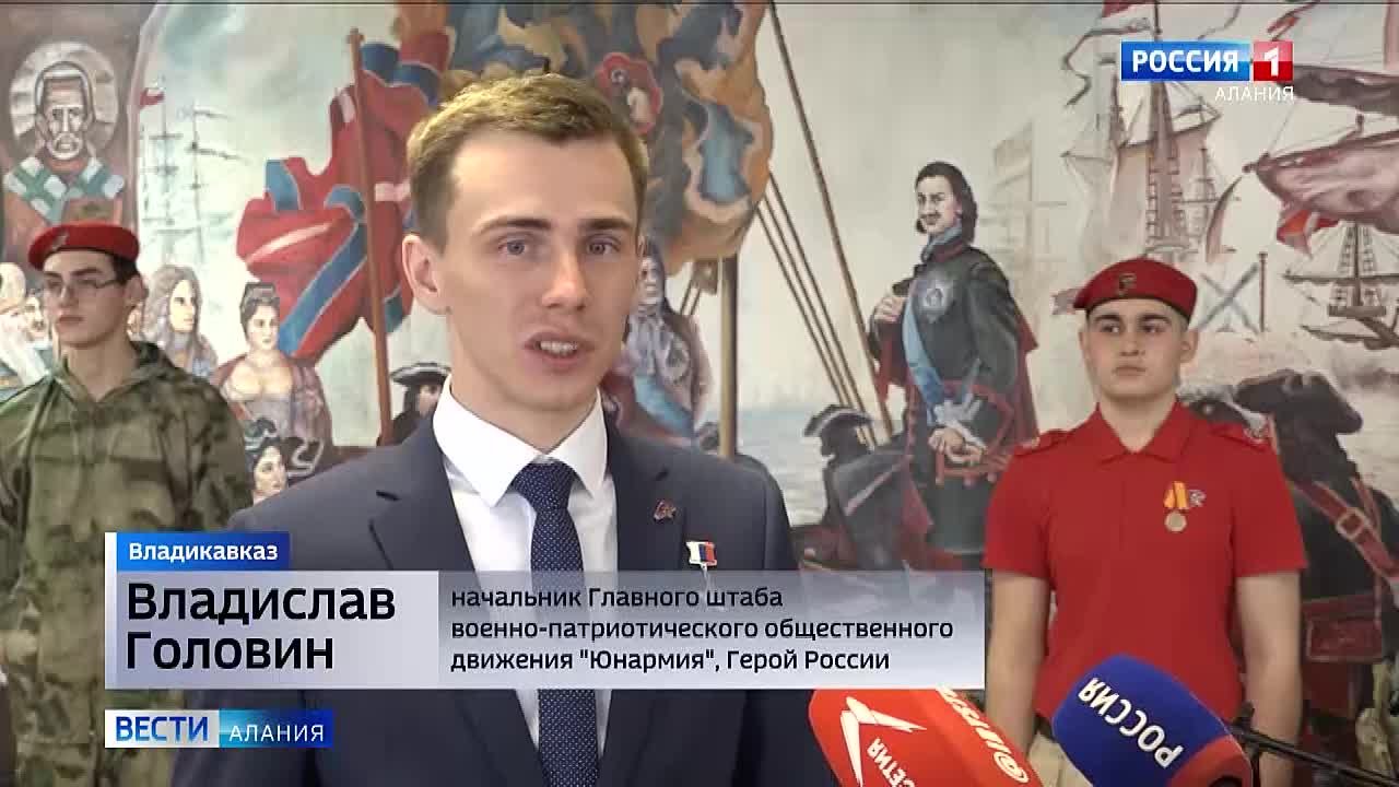 В зале Дома офицеров состоялся большой концерт. Почётные гости – министр образования и науки Элла Алибекова и начальник регионального отделения "Движения первых" Иристон Кесаев. В рамках торжественной встречи Владислав Головин наградил участников военно-патриотического движения за активную общественную деятельность.