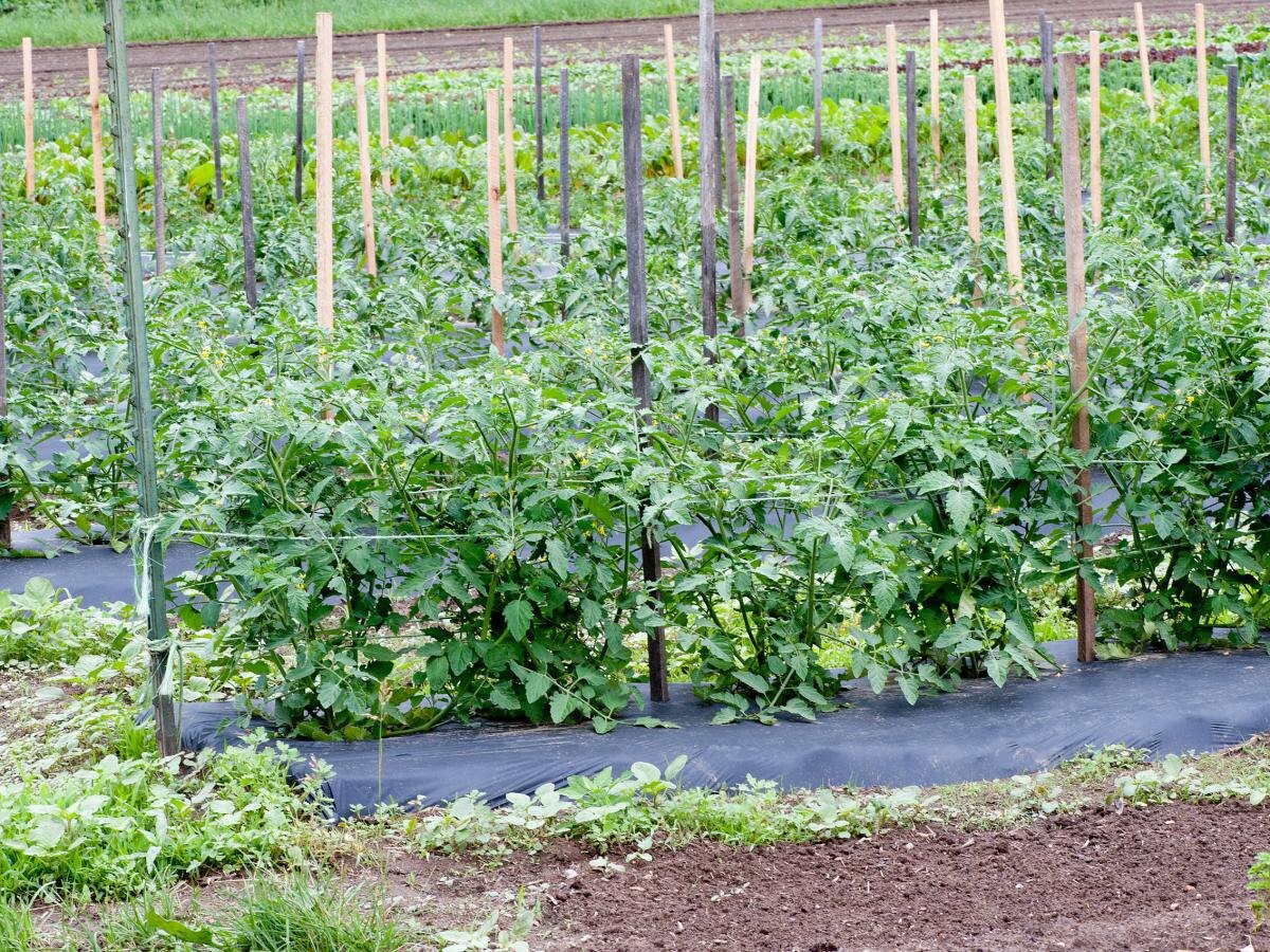 - Сетчатые ограждения: специальные сетки для томатов помогают поддерживать кусты и равномерно распределять плоды, просто установив сетку вдоль рядов.
