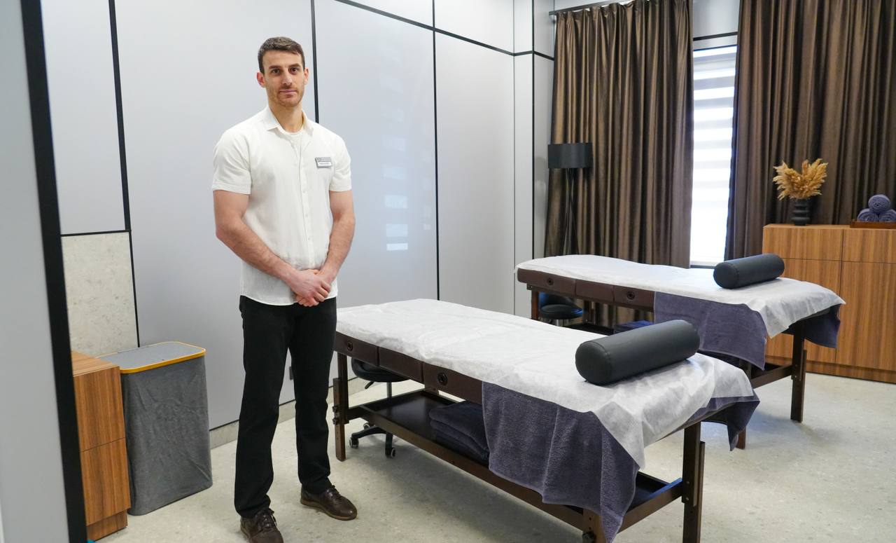 Почетные гости осмотрели помещения и побеседовали с сотрудниками «Физикона». В двухэтажном здании площадью почти 7 тысяч квадратных метров оборудованы спортивные залы, бассейн, массажные кабинеты, парная зона с банями и хаммамом. Дополняют инфраструктуру комплекса детская игровая зона, комната матери и ребенка, а также кафе здорового питания.