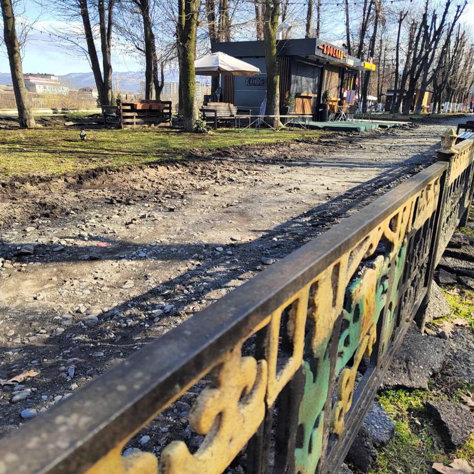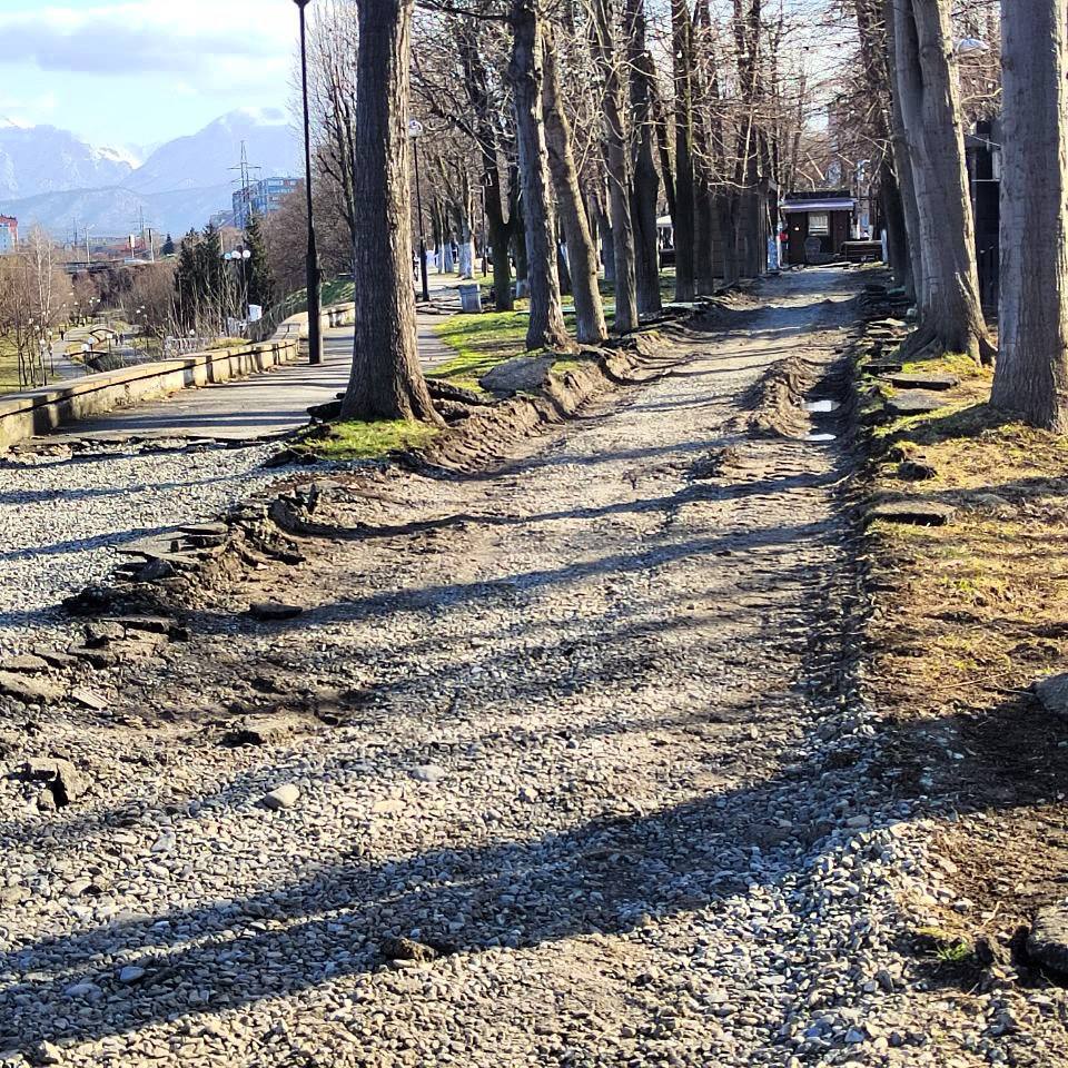 Сегодня это место очень популярно у горожан. Свободное время на берегу Терека проводят не только жители ближайших домов. Прогуляться по набережной приезжают люди со всего города. При этом территория капитально не ремонтировалась более 20 лет. Сейчас работы в активной фазе - специалисты уже демонтировали старое асфальтовое покрытие и завезли строительные материалы. Рабочие готовят основание будущих дорожек. В планах установка поребриков и бордюров, укладка брусчатки. Обязательно обновим освещение, установим лавочки и урны.