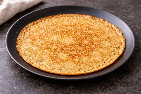 Готовые блины отличаются тонкостью: их края слегка хрустящие, а середина остается мягкой, без излишней тяжести.