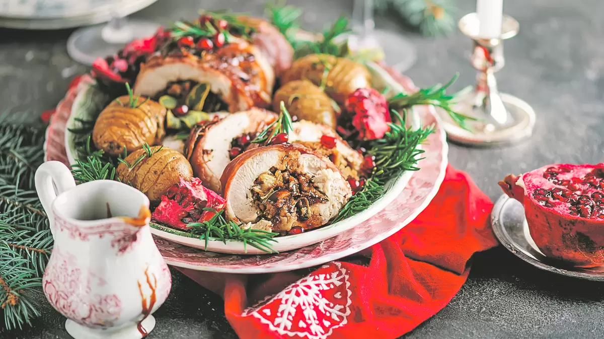 Рулет из индейки с гранатовым соусом