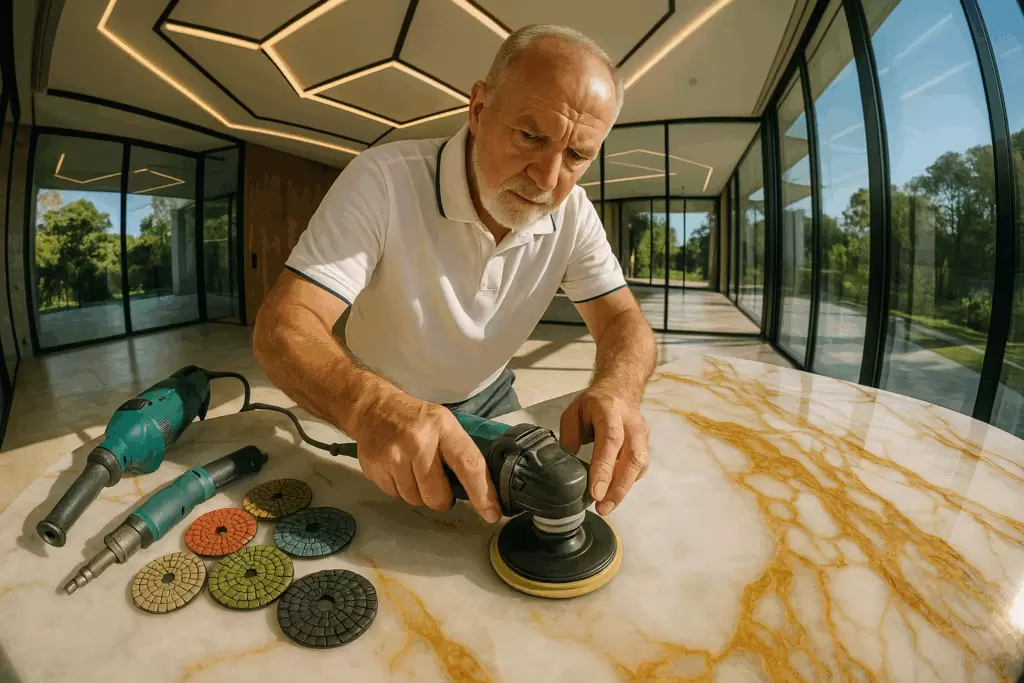 - Специальные очистители: Нейтральные составы, предназначенные для работы с натуральными камнями, помогают удалить загрязнения без повреждений.