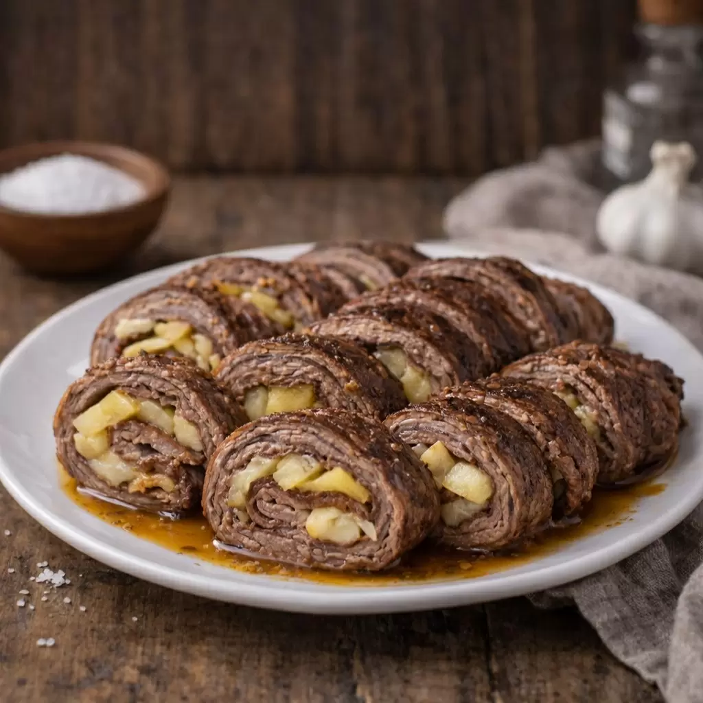 Когда за окном прохладно, дом наполняется знакомым ароматом: медленно запекающееся мясо, щепотка груши и сыр, создающие уютный фон для семейного вечера. Этот рулет — не просто блюдо, а спокойная история о том, как простые ингредиенты дружат между собой, превращаясь в теплоту на тарелке.