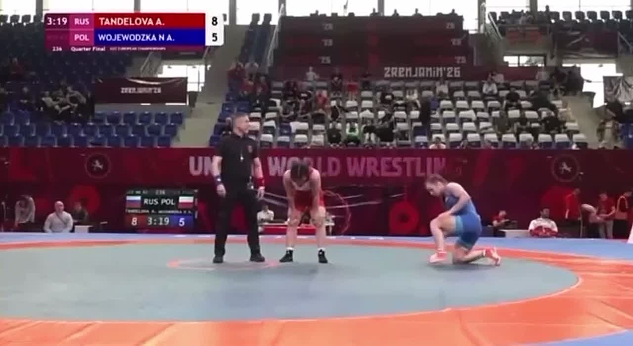 Амина Танделова выступает в весовой категории до 62 кг. Она уверенно прошла в четвертьфинале Алисию Вожеводскую (Польша), одержав победу на туше.