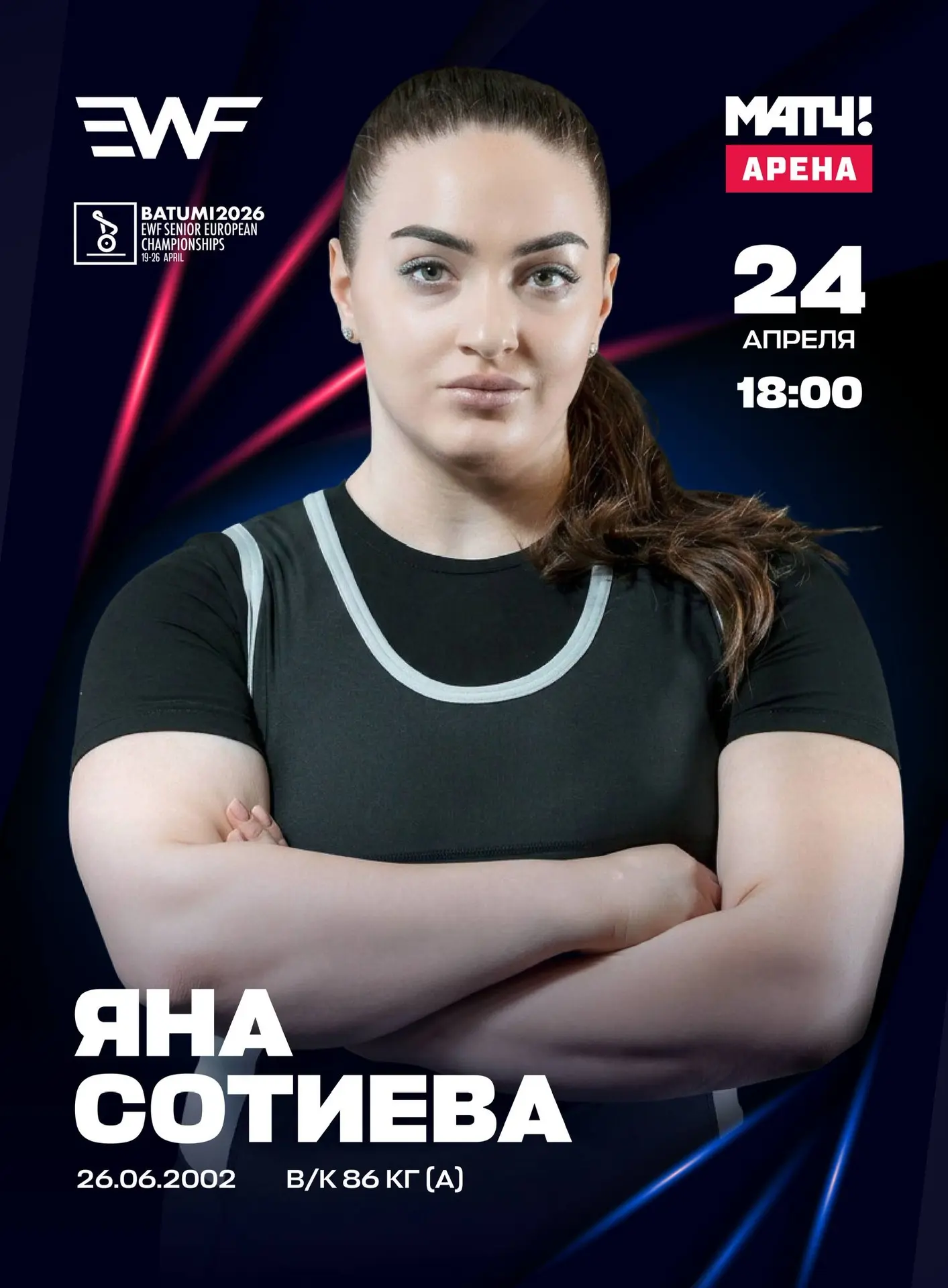 В Батуми продолжается чемпионат Европы по тяжёлой атлетике. В 18:00 по московскому времени на помост выйдет Яна Сотиева, которая поборется за медали в весовой категории до 86 кг.